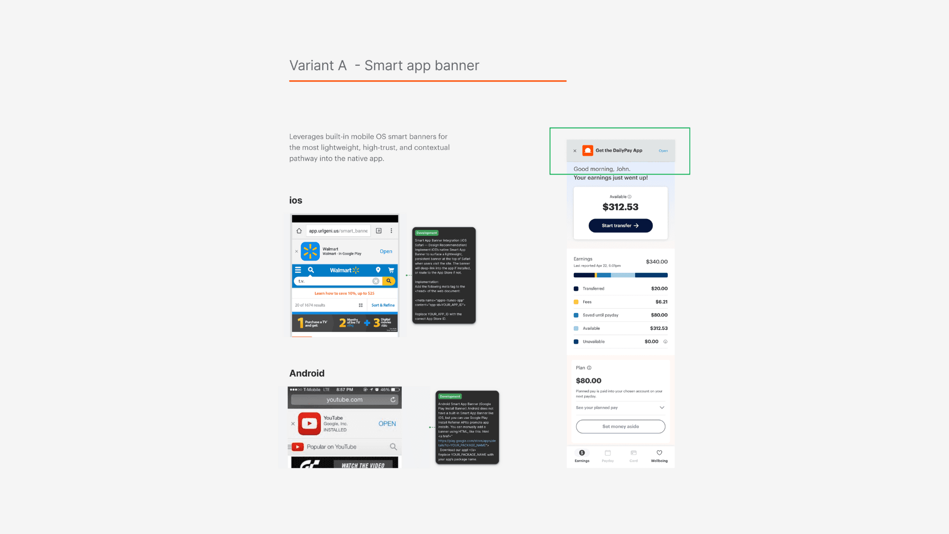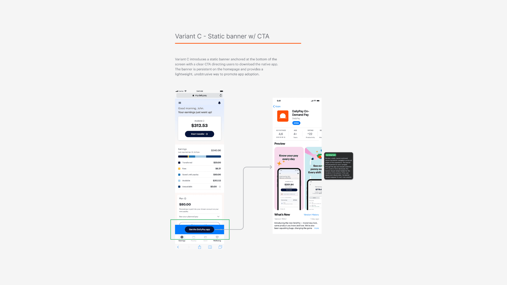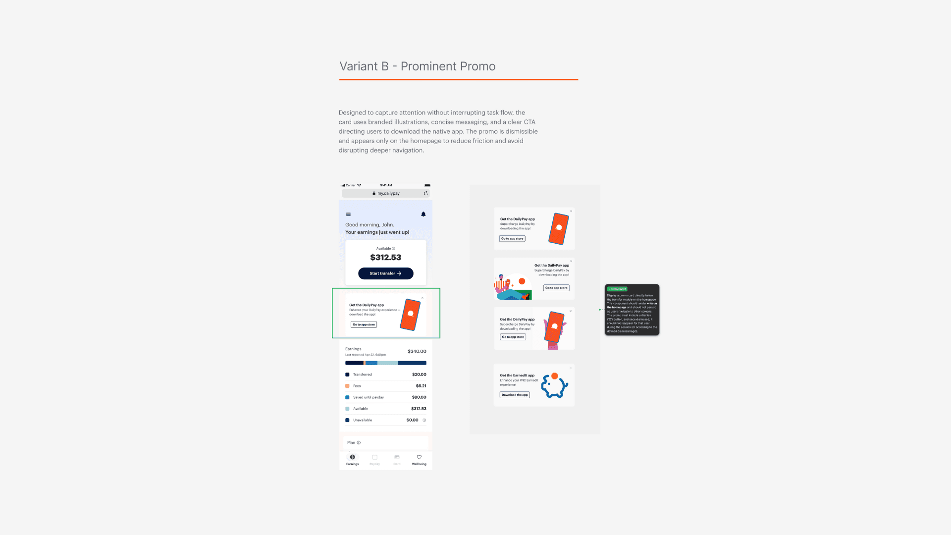 DailyPay’s native mobile app consistently outperforms mobile web across engagement, retention, and monetization. To increase the share of users accessing DailyPay through the app, I launched an ABCD experiment to evaluate which in-web promotional surface most effectively drives users to download and activate the native app.