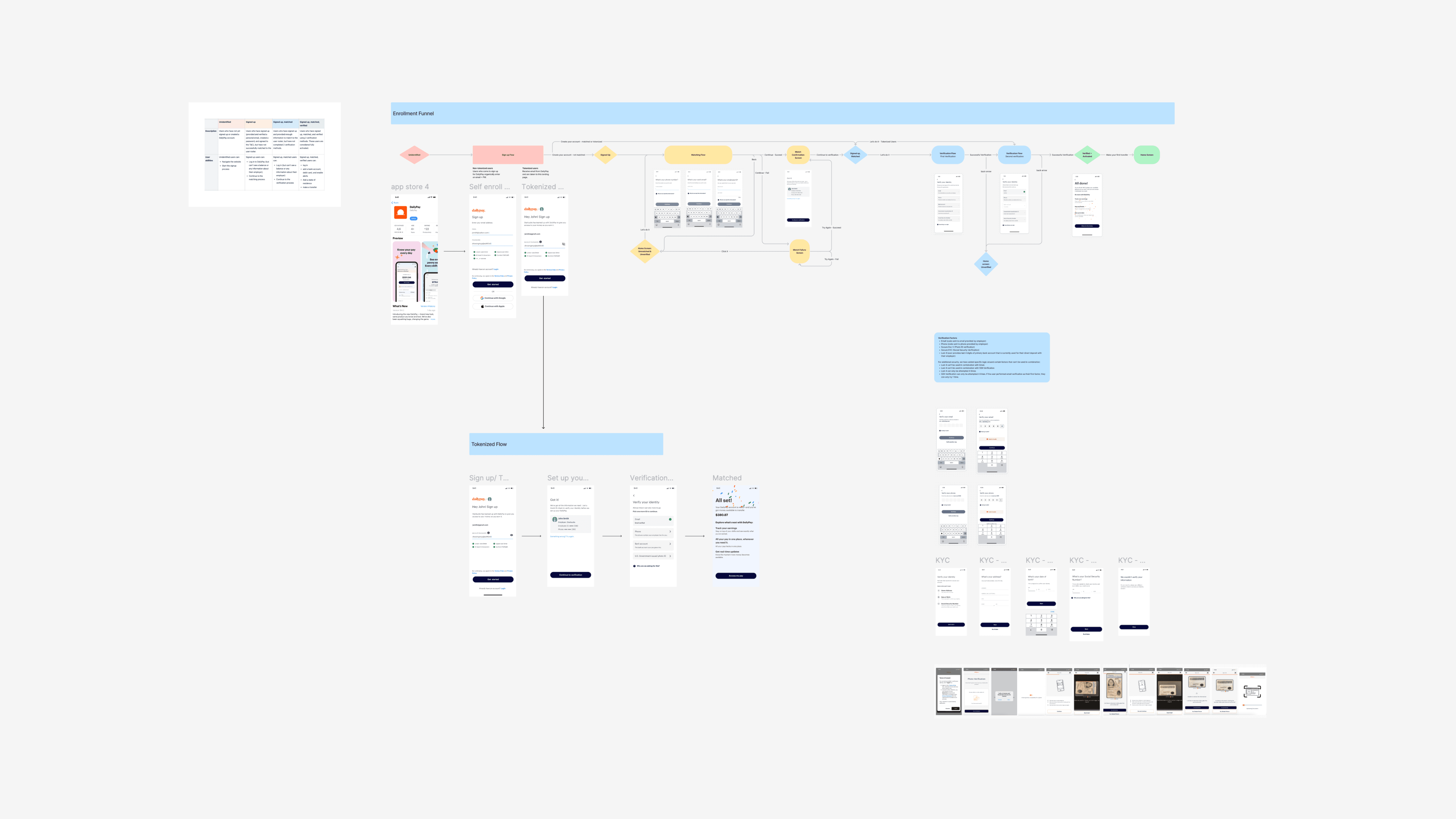I partnered with Product, Research, and Engineering to map the full enrollment funnel, diagnose friction points, and design segmented onboarding flows tailored for tokenized and self-enroll users. The work included redefining key touchpoints—landing screen, employer match, identity verification, and milestone-based guidance—while delaying sensitive asks, reducing cognitive load, and aligning steps to user context. Using iterative testing and behavioral insights, we validated which patterns most effectively built trust and improved progression.